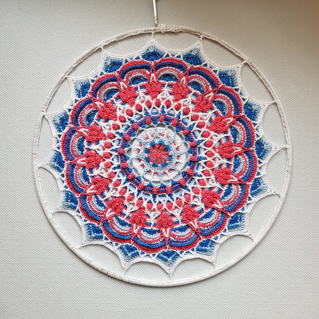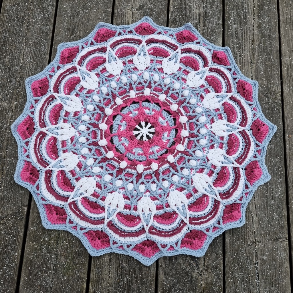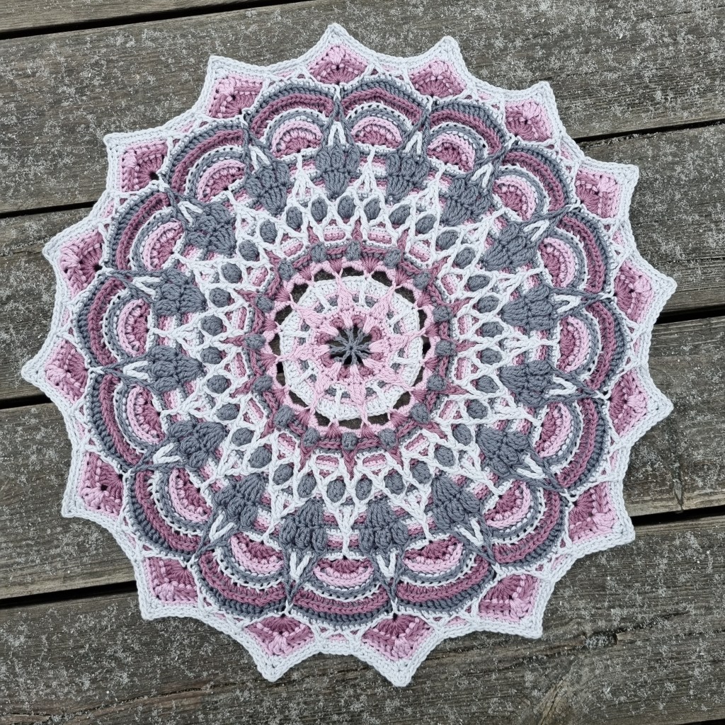 This is my very first large Mandalapattern and I must admit that I am immensly proud! I actually made the Swedish pattern already in August 2021, but as a fulltimeworking mom of two boys it’s been hard fo find time to translate the 40 rounds to English and proofreading etc. But now! The time has come!