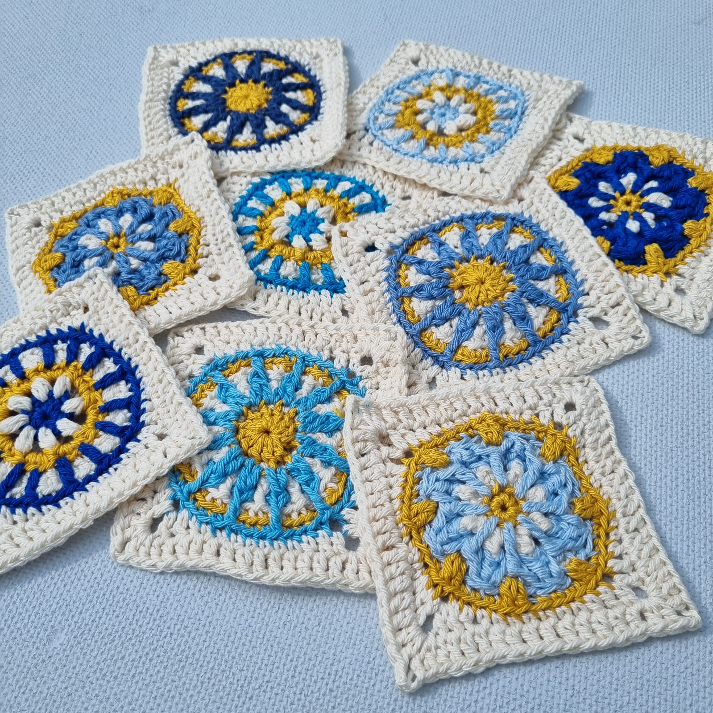 I try to design a square-pattern in celebration of grannysquareday. I know, and I begin by saying this (hoping that if you need to correct me without reading the whole post you at least read this far 😘) I’m not saying these are grannysquares, but they are crocheted squares and designed to celebrate the traditional grannysquare, not pretending to be one.